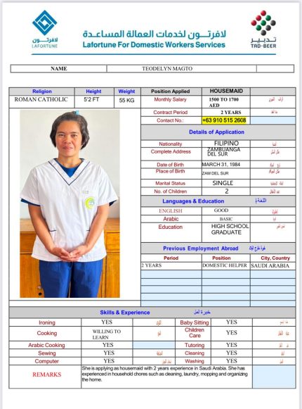 Lafortune for domestic worker center was established in United Arab Emirates , with the goal of connecting job seekers with employers as we provide tailor-made recruitment solutions that match each client’s expectations.