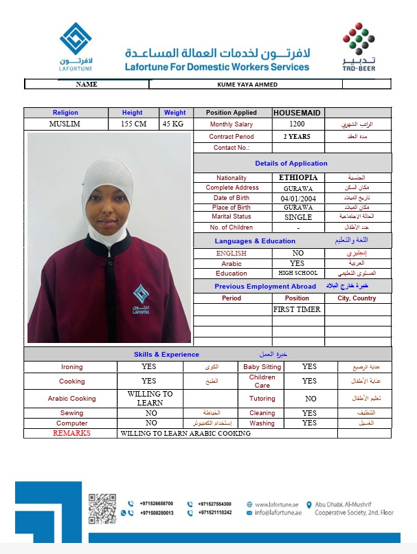 Lafortune for domestic worker center was established in United Arab Emirates , with the goal of connecting job seekers with employers as we provide tailor-made recruitment solutions that match each client’s expectations.