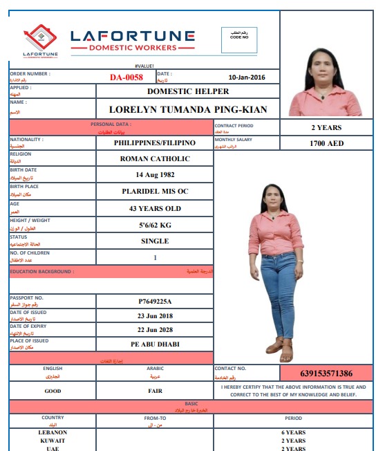 Lafortune for domestic worker center was established in United Arab Emirates , with the goal of connecting job seekers with employers as we provide tailor-made recruitment solutions that match each client’s expectations.