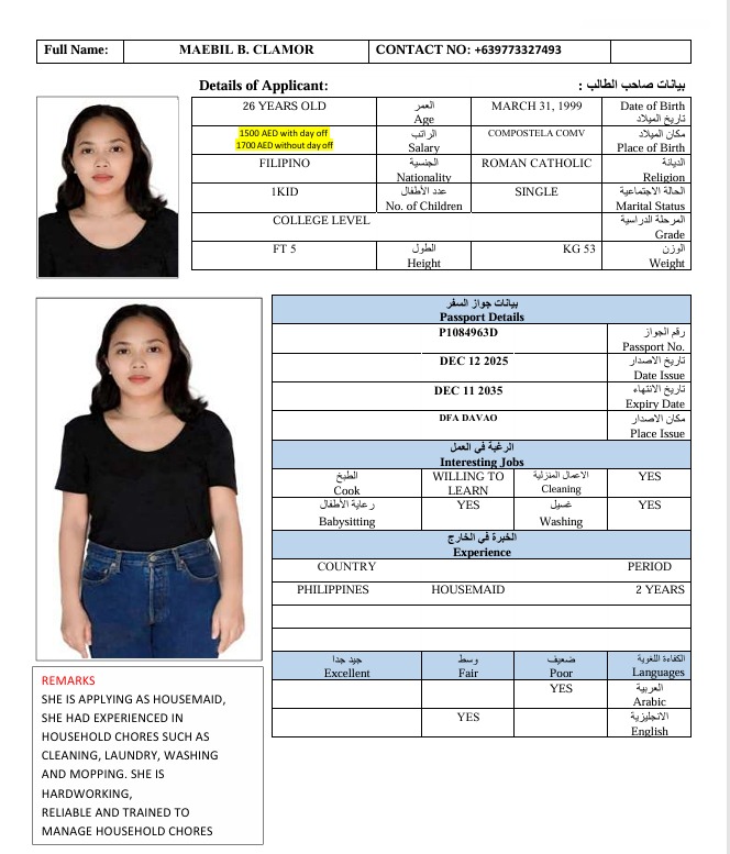 Home Nationality FILIPINO MAEBIL CLAMOR