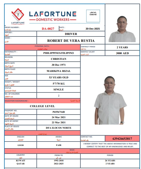 Home Nationality FILIPINO ROBERT DE VERA RUSTIA
