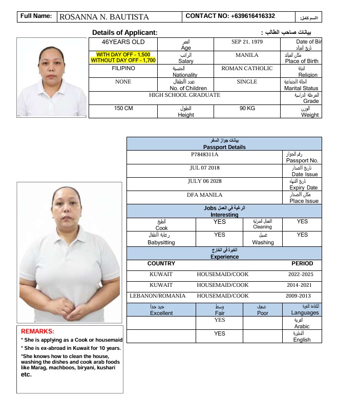 Home Nationality FILIPINO ROSANNA BAUTISTA