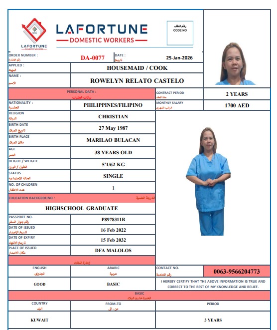 Home Nationality FILIPINO ROWELYN RELATO CASTELO