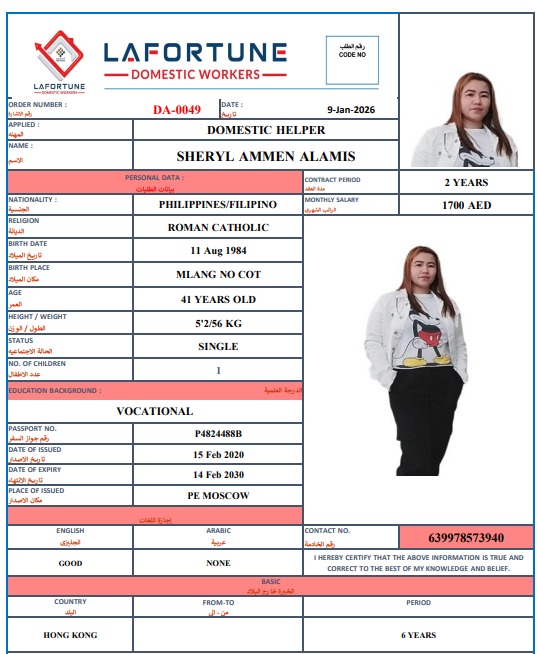 Home Nationality FILIPINO SHERYL AMMEN ALAMIS